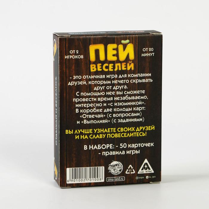 Купить игра для компании "пей веселей" 50 карт от 180 руб. с доставкой до пункта выдачи в Архангельске. Интернет магазин ДекаМаркет. Оплата при получении.